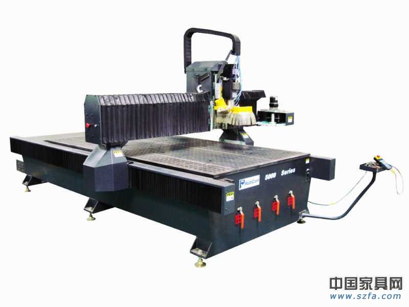 Multicam  5000系列龍門式CNC加工中心是工業生產型號機型,全鋼架結構。空行速度為45米/分鐘,最高切割速度為30米/分鐘。高速的3軸連動適合大批量木、鋁、銅,復合材料工件的切割加工。主軸采用意大利知名品牌的高頻電主軸,其具有結構緊湊、機械效率高、噪音低、振動小等特點,是提高機床切削性能利器。美國MultiCam原廠數控系統,性價比最優。