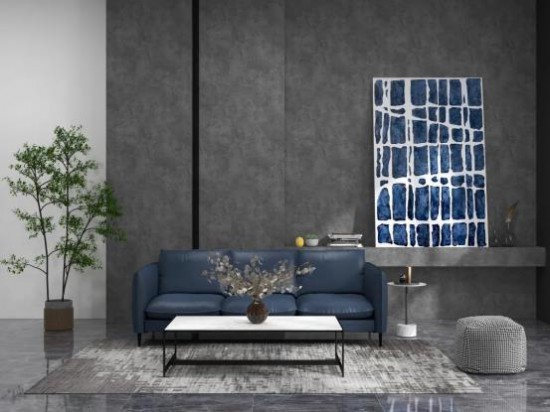 而如果對美感要求更高,可以嘗試涂刷彩色乳膠漆,與沙發同一色調深淺飽和度不同,或是不同色調,互補呼應,簡約干凈,空間也更有層次感。裝飾畫可以落地擺放,多一份隨意,也增強藝術氛圍。