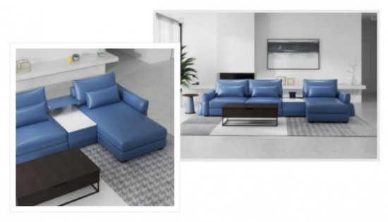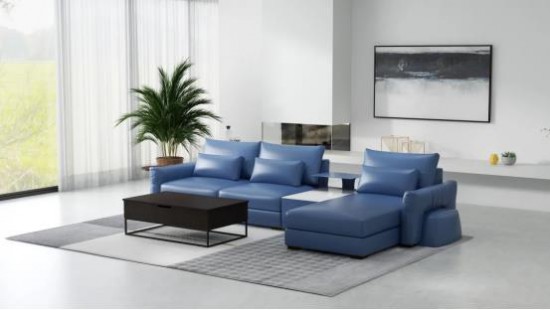 CBD家居· 白金 | BS071沙發,藍色低調內斂,營造明朗清麗的視覺觀感,雙重靠包舒適感上佳,置物臺組合設計,更顯實用性,飽滿填充的月牙形弧形扶手,將細節之美展現,加持空間質感。
