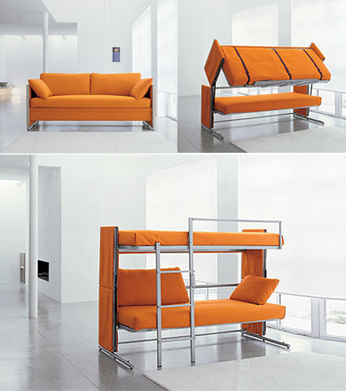沙發和床糾纏不清的設計的確是不少,但是之前聽到的那些,無論如何的變換,都始終是從沙發變成一個床,這一次的這個大黃蜂就更牛一些,可以變成雙層床!