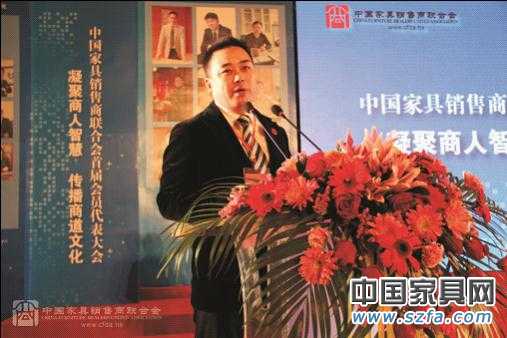 中國家具銷售商聯合會首屆輪值會長曾震宇作大會籌備工作報告