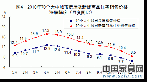 70個大中城市房屋及新建商品住宅銷售價格月度同比漲幅呈現先上升后回落趨勢。