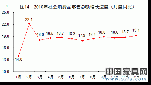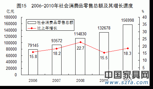 在限額以上企業商品零售額中,汽車類零售額比上年增長34.8%,糧油類增長27.9%,肉禽蛋類增長21.7%,服裝類增長25.8%,日用品類增長25.1%,文化辦公用品類增長23.5%,通訊器材類增長21.8%,化妝品類增長16.6%,金銀珠寶類增長46.0%,中西藥品類增長23.5%,家用電器和音像器材類增長27.7%,家具類增長37.2%,建筑及裝潢材料類增長32.3%。