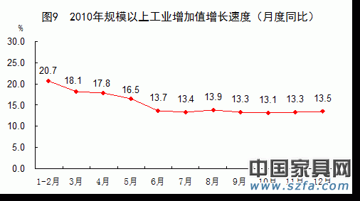全年規模以上工業中,農副食品加工業增加值比上年增長15.0%;紡織業增長11.6%;通用設備制造業增長21.7%;專用設備制造業增長20.6%;交通運輸設備制造業增長22.4%,其中汽車制造增長24.8%,鐵路運輸設備制造增長25.4%;通信設備、計算機及其他電子設備制造業增長16.9%;電氣機械及器材制造業增長18.7%。六大高耗能行業[4]比上年增長13.5%,其中,非金屬礦物制品業增長20.3%,化學原料及化學制品制造業增長15.5%,有色金屬冶煉及壓延加工業增長13.2%,黑色金屬冶煉及壓延加工業增長11.6%,電力、熱力的生產和供應業增長11.0%,石油加工、煉焦及核燃料加工業增長9.6%。高技術制造業增加值比上年增長16.6%。