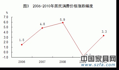 居民消費價格一季度同比上漲2.2%,二季度上漲2.9%,三季度上漲3.5%,四季度上漲4.7%,全年平均比上年上漲3.3%,其中食品價格上漲7.2%。固定資產投資價格上漲3.6%。工業品出廠價格上漲5.5%。原材料、燃料、動力購進價格上漲9.6%。農產品(18.80,0.06,0.32%)生產價格上漲10.9%。
