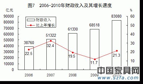 全年財政收入83080億元,比上年增加14562億元,增長21.3%;其中稅收收入73202億元,增加13680億元,增長23.0%。