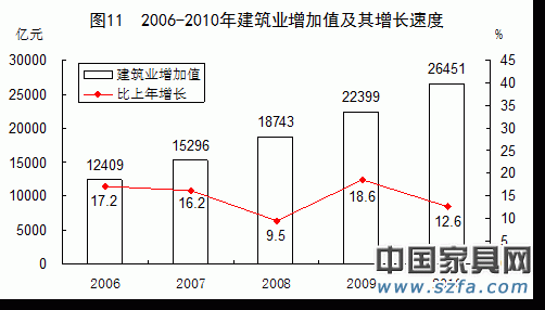 全年全社會建筑業增加值26451億元,比上年增長12.6%。全國具有資質等級的總承包和專業承包建筑業企業實現利潤3422億元,增長25.9%,其中國有及國有控股企業990億元,增長35.0%。