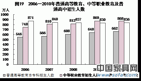 全年研究生教育招生53.8萬人,在學研究生153.8萬人,畢業生38.4萬人。普通高等教育本專科招生661.8萬人,在校生2231.8萬人,畢業生575.4萬人。各類中等職業教育招生868.1萬人,在校生2231.8萬人,畢業生659.2萬人。全國普通高中招生836.2萬人,在校生2427.3萬人,畢業生794.4萬人。全國初中招生1716.6萬人,在校生5279.3萬人,畢業生1750.4萬人。普通小學招生1691.7萬人,在校生9940.7萬人,畢業生1739.6萬人。特殊教育招生6.5萬人,在校生42.6萬人。幼兒園在園幼兒2976.7萬人。