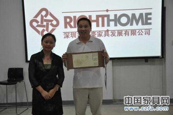 結(jié)業(yè)典禮上中國家具產(chǎn)業(yè)教育學(xué)院院長賴珍珍向仁豪鄭達(dá)峰贈予禮物