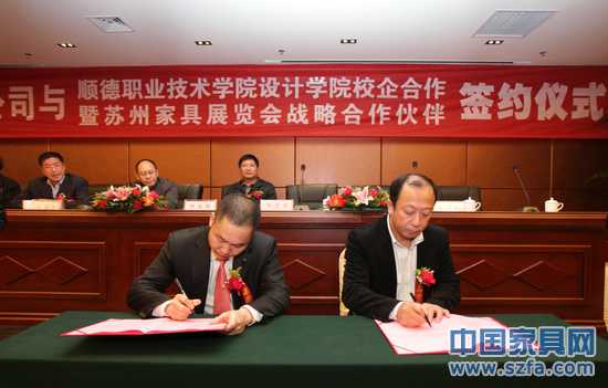江西木牛家具有限公司根據企業制定的大力實施提質提速提效創新發展戰略,加快轉型升級發展戰略,在市家具產業領導小組的領導下,在市家具產業促進局和市家具協會的促成下,經過多次與順德職業技術學院設計學院(以下簡稱設計學院)彭亮院長溝通和探討,在彭亮院長的大力關心和幫助下達成了與設計學院就企業發展規劃、產品研發、展會策劃、人才輸送等方面的校企合作共識。校企合作項目更是得到了蘇州家具展覽會總策劃趙藝學的贊同和支持,并就校企合作項目取得的成果同意長期在蘇州家具展覽會提供一流的展位,使新產品能得到展示和推廣,為校企合作成果提供更好展示平臺,使產品創新的風險降到最低,使企業健康、穩定、持續發展提供了有利的保障,從而達成了江西木牛家具與蘇州家具展覽會戰略合作伙伴的共識。