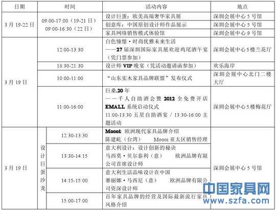 2012年第27屆深圳國際家具展展會活動安排