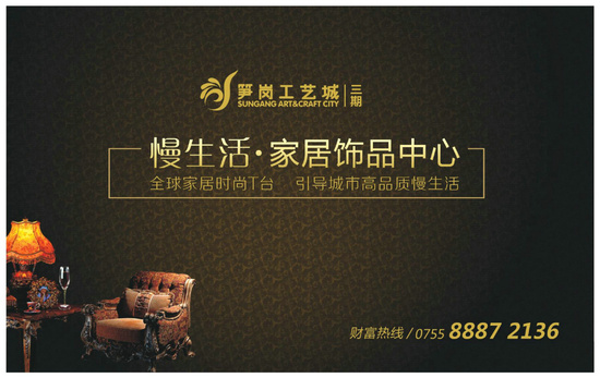 核心提示:筍崗工藝城地處羅湖區寶安北路與桃園路交匯處,位于政府恢弘規劃的筍崗家居飾品產業集聚地核心區域,自開業以來獲得了政府、市場和權威媒體的高度關注和支持,連續舉辦了數屆深圳文博會分會場,并獲得了深圳市重點文化企業、深圳市文化產業基地、深圳市文化+旅游型示范園區等二十余項榮譽稱號。筍崗工藝城致力于成為國內領先、國際化的家居飾品高端專業市場運營商,整體規劃30萬㎡,將打造成為超大規模的全球家飾采購中心。