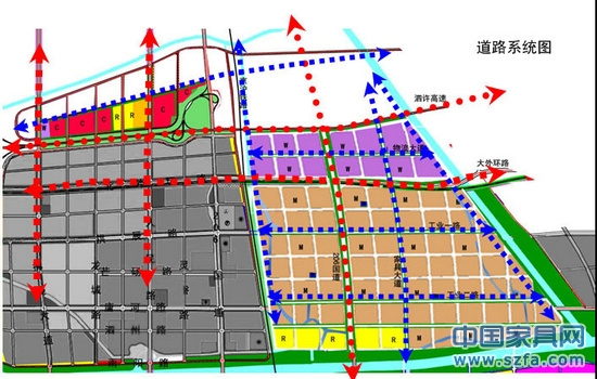 中國宿州·深圳家居產業園規劃占地15平方公里,分東西兩個部分組成,其中東邊為工業制造、物流倉儲,總用地約14平方公里,北至泗許高速,南至硭碭路(規劃),東至206改線國道,西至匯源大道;西邊為研發中心、商貿市場部分(商貿區),總用地面積約1平方公里,北至物流大道(規劃),南至泗許高速公路,西至拂曉大道,東至匯源大道。