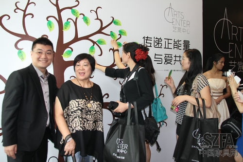 會場,藝賞中心與慈善企業麥田機構進行“傳遞正能量,與愛共生長”活動。上百名設計師在藝術夢想之樹顯示了大愛之心。