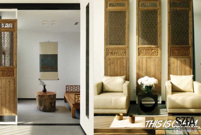 是對中國文化理解上的當代再設計,在門、墻、色彩等重要建筑要素上體現傳統的中式風采,但是也將鋼、玻璃、大開窗等現代材質大加發揮。重視文化意蘊;配飾用文人字畫、古玩、雕刻、盆景等藝術品加以點綴。