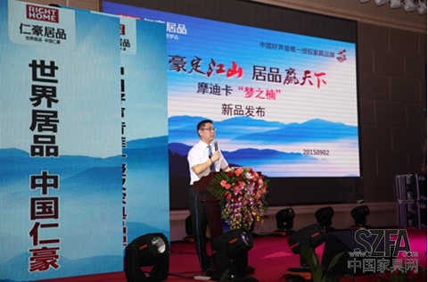 緊接著是仁豪集團董事長尤國忠先生致歡迎辭,作為“中國板木家具之父”和“中國亮光板式家具之父”,他帶領仁豪集團一次又一次的走向了行業巔峰!致辭此次新品發布會,尤董表示仁豪集團正以完善服務體系,提高服務水平,實現店面管理精細化為目標,為家具業發展貢獻力量!