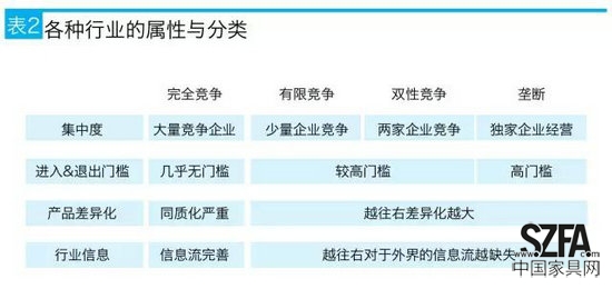 對于完全競爭行業而言,不僅競爭企業眾多,而且進入與退出的門檻低、產品同質化現象嚴重,還有產業鏈信息完善,企業很難長時間持有不被別人模仿的核心技術,所以是典型的進入容易做好難的行業。表2是各種行業的屬性與分類。