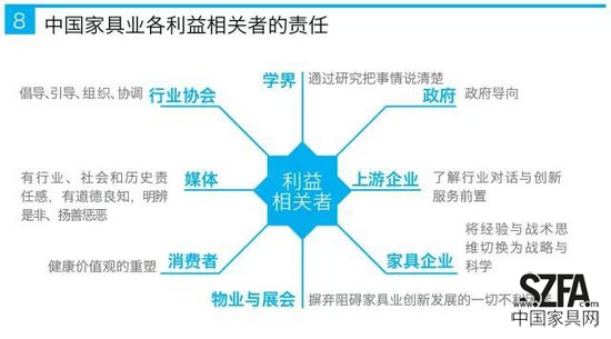中國家具業輝煌的未來,要靠大家一起努力,共同打造。各利益相關者肩負著行業與社會的共同責任,各自需要有所作為,見圖8所示。