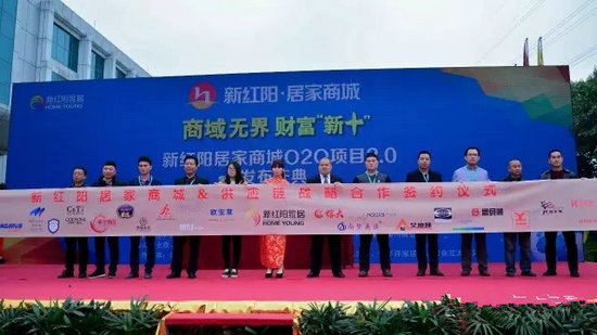 3月15日上午,鶴山新紅陽實業有限公司以“商域無界,財富新+”為主題的新紅陽居家商城O2O項目舉行了起航儀式,據了解這是全國首家大力發展家具行業O2O的企業。當天,鶴山市委常委、常務副市長陳常岷,新紅陽集團董事長朱長遠,總裁朱玉倫,新紅陽廣東公司董事總經理朱玉山以及全體高管出席,會議還邀請到來自全國各地的經銷商、合作商和行業協會等重要嘉賓共300余人。