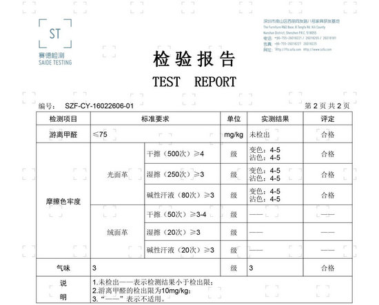 2016年2月,繼1月軟床成品抽檢之后,圓方園迎來賽德檢測對其關(guān)鍵原材料的品質(zhì)抽檢,此次共抽樣5款皮革面料、2款紡織品面料,針對理化性能及環(huán)保性能進(jìn)行全面檢測,抽檢結(jié)果“符合”優(yōu)品標(biāo)準(zhǔn)要求。