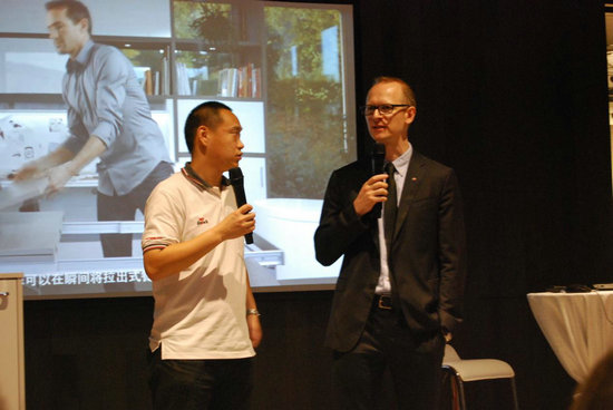 在發布會上,海福樂中國銷售總監Fahner先生介紹了公司與德國老牌廚衛供應商VAUTH-SAGEL的長期戰略合作關系,并推出了VAUTH-SAGEL的最新產品和最新設計系列之CORNERSTONE新型角柜解決方案——這也是VAUTH-SAGEL在中國的首秀。