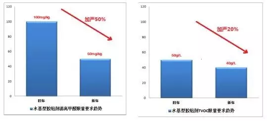 類別依舊分為丙烯類、縮甲醛類、聚醋酸乙烯酯類、橡膠類、聚氨酯類、其他類膠粘劑,但限量要求進行如下的提升:
