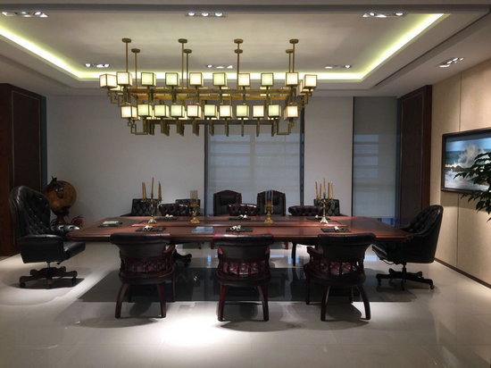 佳誠以純實木辦公產品為核心,產品涉及班臺、書柜、班椅、沙發、茶幾、茶水柜等,擁有歐式、中式、現代三大類風格,12大系列產品。實木材質對照度要求比較講究,在滿足空間一定亮度的情況下,控制單燈功率及燈具布置密度;設計師采用重點照明的方式,完美呈現產品的細節,營造一個舒適的高品質空間氛圍。