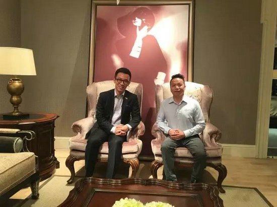 (左一)美國(guó)北卡羅納州駐華辦公室主任丁志寧先生與華葉家博園董事長(zhǎng)黃錦標(biāo)先生(右一)