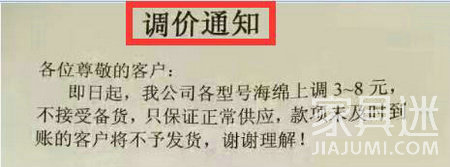 漲價(jià)告急!部分海綿廠發(fā)布調(diào)價(jià)通知