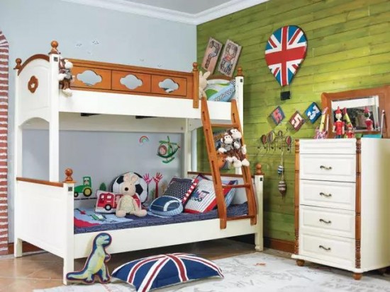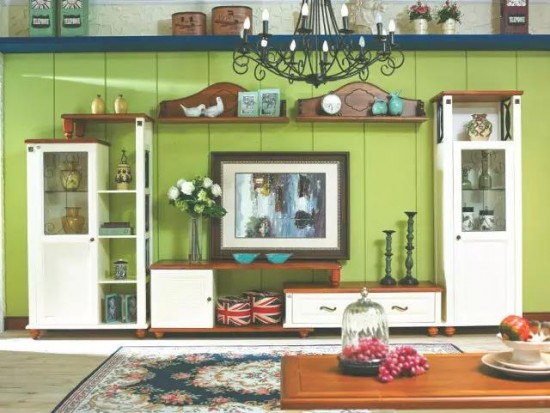 在家具設計中,除了家具的造型外還有很重要的一點就是色彩搭配,這組產品除了家具本身的原木色和白色外,還在空間中大量使用草綠、磚紅等顏色進行點綴,讓空間營造出小清新的田園風,更符合年輕一代的審美時尚。