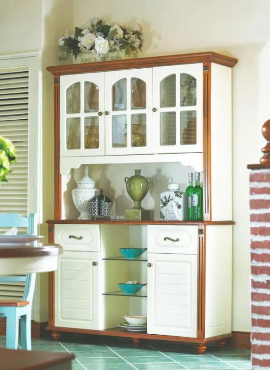 板木結合的運用,充分利用了實木的可塑性和板材的穩定性。實木部分使用的開放漆,清晰的看到實木的質樸紋理。車削的三維造型,均是鄉村風的經典,而細節的刻畫精致到邊縫的做舊處理。板材部分運用切割、壓花等工藝,在平面上展現了豐富的層次感。在主體質樸的素色調中,搭配幾件彩色的小件家具,為空間增添一份隨性。如此混搭的空間布置,將鄉村風格的復古、淳樸、自由演繹得淋漓盡致。