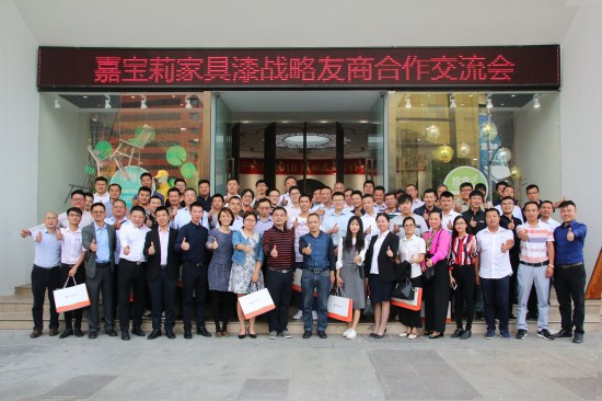 2017年11月4日,2018嘉寶莉家具漆戰(zhàn)略友商合作交流會(huì)在龍江館隆重召開(kāi),嘉寶莉集團(tuán)副總兼家具漆事業(yè)部總經(jīng)理周強(qiáng)、市場(chǎng)部總經(jīng)理劉軍山及近50家知名家具設(shè)備制造商,包括噴涂、輥涂、砂光、環(huán)保治理、展示燈光及原輔材料供應(yīng)商代表出席,共同探討交流。