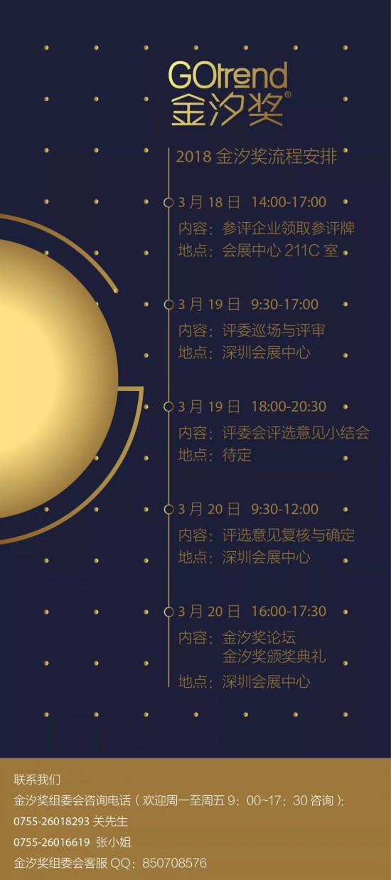 GOtrend 金汐獎是于設計之都深圳發起的家居設計領域專業獎項,是深圳時尚家居設計周暨深圳國際家具展鼓勵參展企業設計創新的一個榮譽平臺,理念為“激發創新、獎勵創新和傳播創新”。該獎項每年評定一次,由深圳市家具行業協會與深圳家具研究開發院組織家具及設計界專家學者和著名設計師擔任評委,對參賽作品的開發理念、創新水平、設計表現等指標進行綜合評定后,評選出本年度優秀作品。