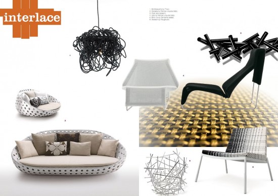 對潮流研究日益增加的興趣已經從時裝行業延伸到鄰近行業, 而今天已經衍生到了“technologybased”即技術性行業,這些行業在傳統上提升的潛力遠勝于時裝行業。 再一次強調,這些現象必須要解釋清楚與市場變化的關系,公司用這種途徑建立自己的競爭優勢。起源于時裝行業的很多工具與過程模型已經衍生到其他各種行業,如:家具、交通工具、電子消費品等等。圖2是近年來采集到的潮流元素之一“交織(interlace)”,圖3是應用這個“交織”元素所設計的家具。