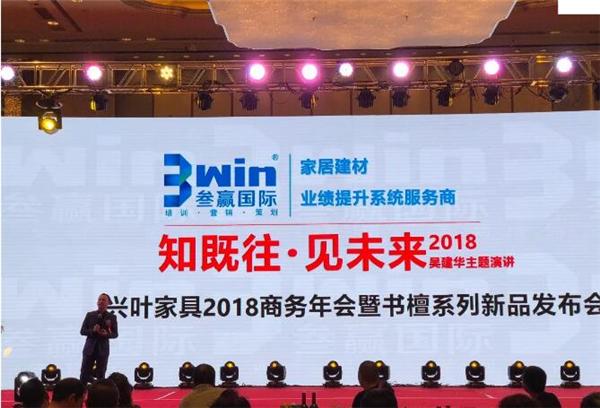 叄贏國(guó)際創(chuàng)始人、中國(guó)家具營(yíng)銷研發(fā)院院長(zhǎng)吳建華老師致辭,展望興葉家具2018年新發(fā)展,并預(yù)祝2018興葉家具商務(wù)年會(huì)暨新品發(fā)布會(huì)圓滿成功。