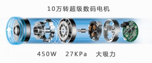 萊克魔潔M95 無線寵物吸塵器,是由萊克董事長兼CTO倪祖根親自帶領28位工程師潛心設計研發出來。魔潔M95 無線寵物吸塵器搭載了萊克最新研發成果第3代10萬轉超級無刷數碼電機,最高功率450W,吸入功率225W,效率達到50%,電機真空度達到驚人的27Kpa,吸力相當于1500W交流吸塵器電機的吸力。