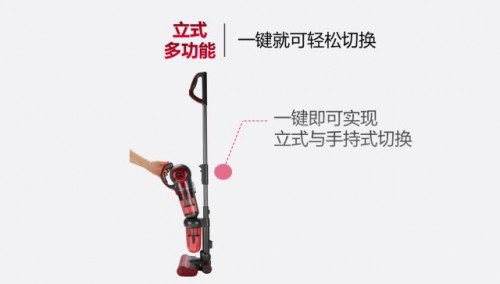 立式地面吸塵模式轉手持模式只需要按一鍵就可切換,無需彎腰把機器放到地上拆裝。