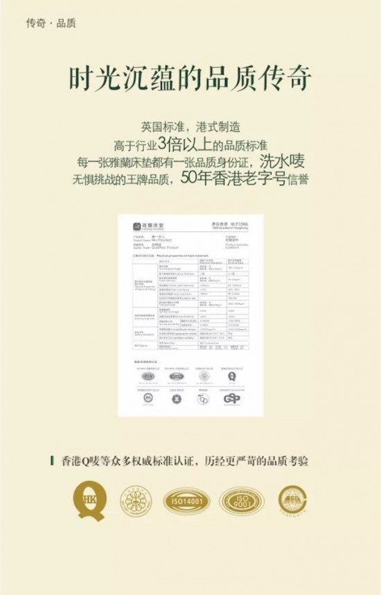 在追尋高品質的道路上,雅蘭從未停歇。早在1982年,雅蘭就獲得香港優質產品標志Q嘜(Q-MARK)認證,也是首批獲得“中國綠色家具優品”認證的四家企業之一,同時,國際制造技術品質獎、綠色環保領跑品牌等無數榮譽見證著雅蘭對于品質的嚴苛管控和追求。2017年,雅蘭投入大量資金和精力建立檢測研究中心,通過對絕大部分與床墊、床上用品、床架產品等相關的半成品、成品進行獨立檢測,事無巨細地把控品質上的每個環節。