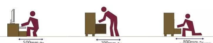 電視柜底部的物品取出時需要彎腰或蹲下,電視柜前需要留出適當的距離方便拿取物品。小伙伴根據日常姿勢隨意取用。