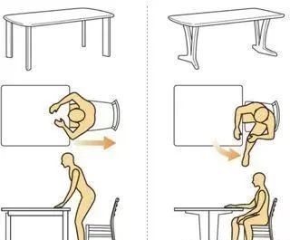 我們常見的桌子都是四腿桌,起身時需要將椅子往后拉出,而兩腿的構造則方便許多,沒有桌腿的干擾,只需旋轉身體就可以輕松出入。四腳桌與兩腳桌的對比▼