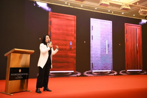 德盾市場(chǎng)部經(jīng)理程潔女士是德盾安全門品牌的產(chǎn)品總設(shè)計(jì)師,通過程經(jīng)理圖文并茂的講解,把德盾產(chǎn)品2019年的升級(jí)優(yōu)勢(shì)分析得很透徹,讓在座的經(jīng)銷商一目了然,對(duì)德盾有了更深入的了解。程經(jīng)理站在設(shè)計(jì)師的角度,闡述產(chǎn)品的設(shè)計(jì)理念,把最新的家居潮流風(fēng)格和對(duì)應(yīng)的新品推薦給大家,一下子把大家的心都給嗨起來(lái)。