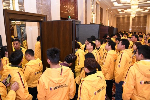 2019年2月26日,德盾發(fā)布會(huì)在武漢洲際酒店舉行,全國(guó)經(jīng)銷商代表不辭辛苦的從全國(guó)各地趕過來(lái),都想跟上新年這一波浪潮。舞臺(tái)前面有一大片顯眼的紅色蓋布,蓋布下面是新品樣品門,無(wú)疑是今天的亮點(diǎn)。