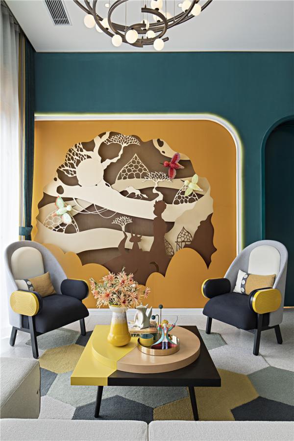 檸檬黃調(diào)延續(xù)到洽談區(qū),在設(shè)計(jì)上以孩童的視角與大人的經(jīng)驗(yàn)雙重?cái)⑹赂裾{(diào)為追求,格調(diào)營造上維持了清新明麗的氛圍。孩童最珍貴、最純粹的童趣與童真通過設(shè)計(jì)的美學(xué)質(zhì)素轉(zhuǎn)化為一個(gè)具象的體驗(yàn)空間,童話的元素恰如其分地呈現(xiàn),小王子的意象詮釋出永存于心的天真與浪漫。
