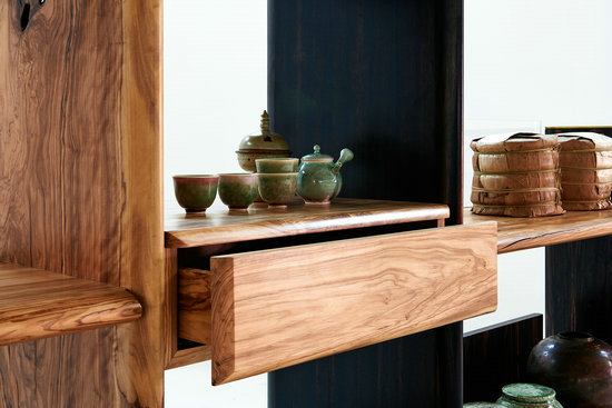 對(duì)MUUSA而言,木材是有生命的,有“毛孔“能呼吸的,為此,他們盡量不用現(xiàn)代工業(yè)化的方式處理木材或摻雜化學(xué)物質(zhì)與其中,而是盡力把材質(zhì)原有自然屬性表現(xiàn)出來(lái),如常用的紅木與橄欖木皆是如此。