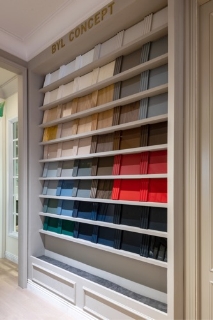 BAIYULAN白玉蘭櫥柜紅星美凱龍旗艦店以“彩虹墻”形式呈現了17種品牌標準色的選擇