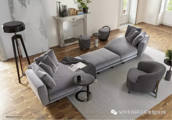 國外實木品牌在這一點上做出示范,模塊化在實木品牌的沙發上也已經非常常見。Porada的新品Abacus在組合形式上進行了創新,不再使用傳統的直角轉角,而是使用六邊形模塊,讓客廳空間有了更多的組合可能。就產品的靈活度而言,精準契合目標人群在起居室閱讀交流的習慣,并且完全不輸專業軟體競品,提升了自身軟體產品的競爭力。