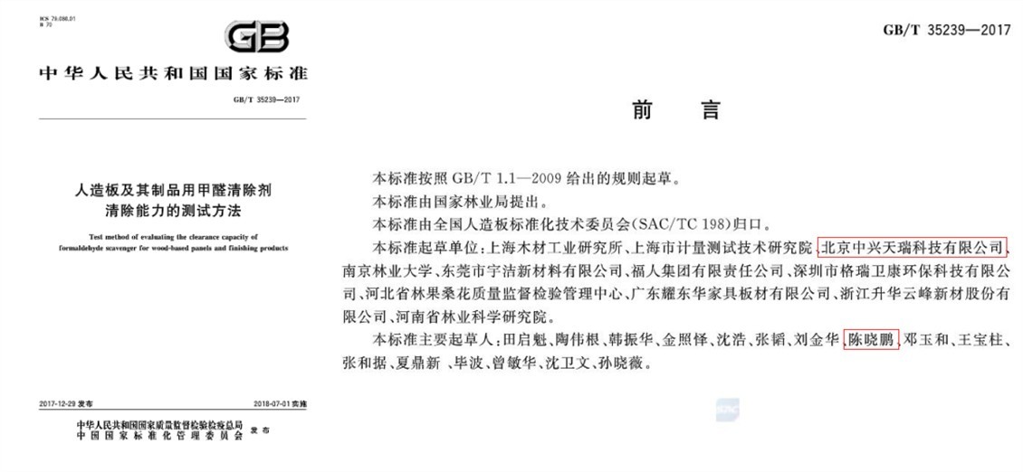 治理人造板的甲醛污染,一定要選用“人造板及其制品用甲醛清除劑”(簡(jiǎn)稱“人造板甲醛清除劑”)。針對(duì)人造板甲醛清除劑,我國(guó)制定有國(guó)家標(biāo)準(zhǔn)《人造板用甲醛清除劑清除能力的測(cè)試方法》GB/T35239—2017,來(lái)檢驗(yàn)人造板甲醛清除劑的除醛效果。
