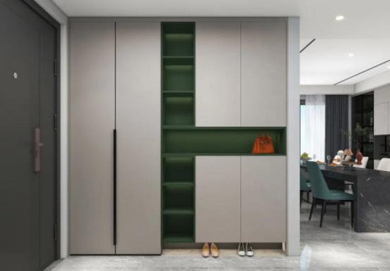 開門入室,視野敞亮疏闊。到頂玄關柜設計,利落的線條營造空間的整潔觀感,摒棄繁雜的裝飾,井然有序的收納分區,開合有致,奠定空間的現代感基調。
