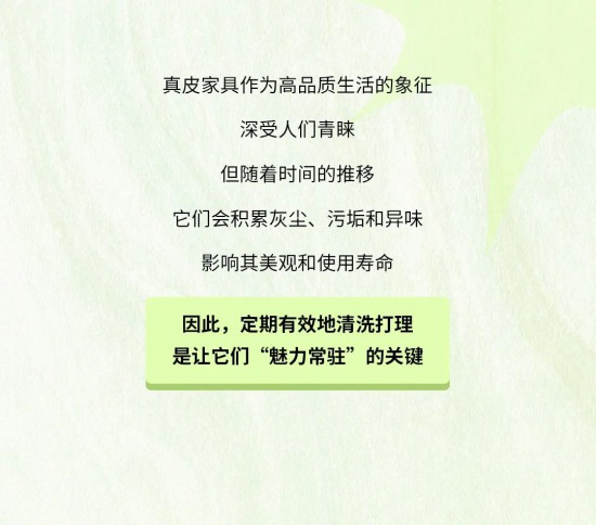 核心提示:真皮家具作為高品質生活的象征,深受人們青睞,但隨著時間的推移,它們會積累灰塵、污垢和異味影響其美觀和使用壽命。因此,定期有效地清洗打理是讓它們“魅力常駐”的關鍵。