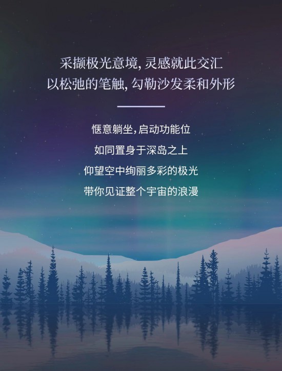 核心提示:愜意躺坐,啟動功能位,如同置身于深島之上,仰望空中絢麗多彩的極光,帶你見證整個宇宙的浪漫。